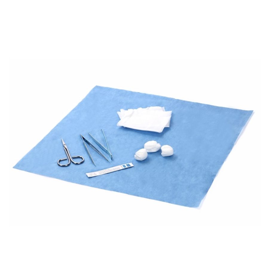Verpimo rutuliukai, 35g/m² raišteliai, 3 vnt Vienkartinės tvarsčių žnyplės, metalinės, smailus antgalis, 12cm, 1 vnt Audinių žnyplės, metalinės, 12cm, 1 vnt Įklotai su raišteliu, 14,5 x 19,35 cm, sulankstytas dydis 7,25 x 9,75 cm, 4 sluoksnių, 3 vnt. Siūlų išėmimo žirklės, metalinės, 14cm, 1 vnt Padėklas, 17 x 11 cm, 1 vnt Įvyniojimas, 40 x 40 cm, 35g/m² SMS neaustinis audinys, 1 vnt. Sterilizacijos indikatoriaus kortelė, 1 vnt |